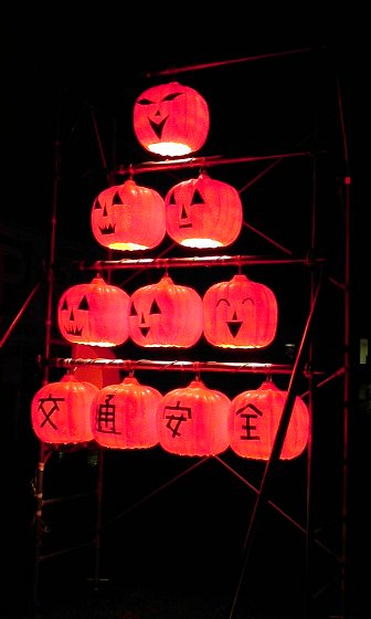 北海道の和寒町でみかけたんだが、めんこいハロウィンを想像させるカボチャの提灯を発見。