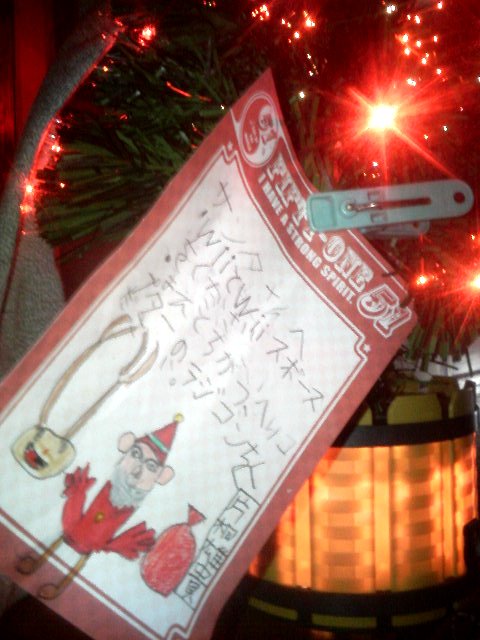 こっそりサンタに扮してワタスがおてまみを書いた。