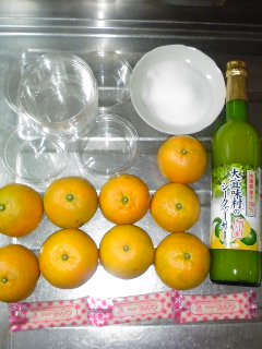 粉かんてん・仲善さんのシークワーサーかじう・たんかん・グラニュー糖・水・カップ。