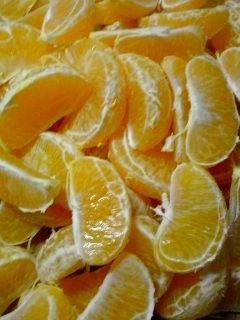 なんとも中途半端なタンカン9個の外の皮を剥いで、実をバラバラにした。