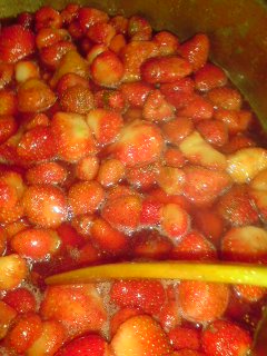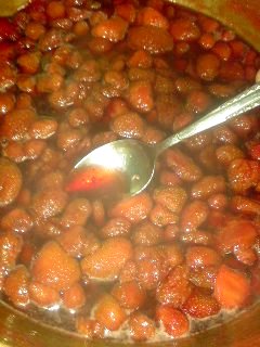 暫くすると水分が出てきて、鍋には苺のちれいな色で満たされます。