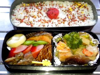 毎朝15分以内位でいかに素早く手抜きしつつ(コラ)、美味しそうに見える出来映えにするかなのさ。