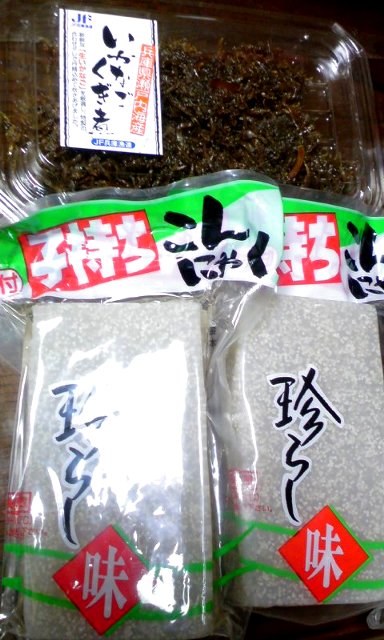 いかなごのくき煮って佃煮と、珍らし子持ちこんにゃくです♪