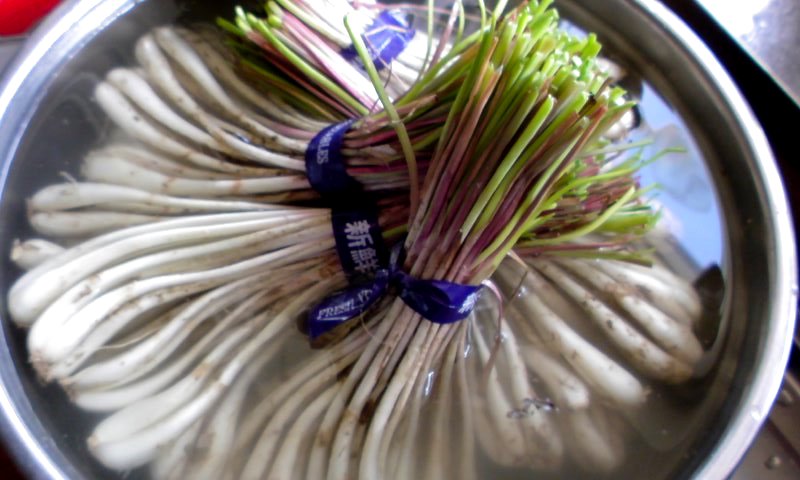 この島らっきょーって、外側の薄皮を剥いてから処理せなならんのさ。