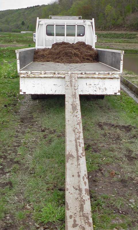 こうやって足場板をかけて、一気にねこをトラックの上まで駆け上がる。