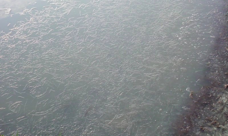 沢山ある田んぼには、しこたまゴミが浮いてやがる。