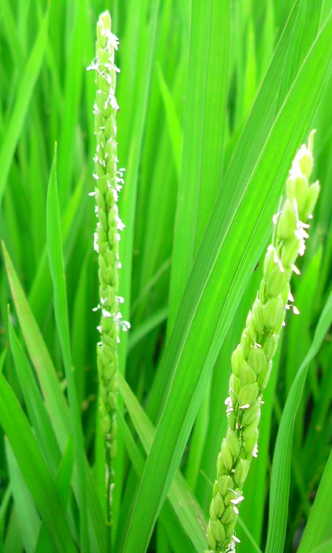 ちらほらと穂頭も垂れ下がり、これから一面緑色から黄金になってくるんだろうな~。