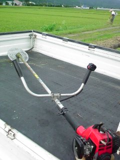 んで、この機械はブラシカッターって言うんだけども、背中に背負うタイプのと斜めがけにするタイプのとあります。