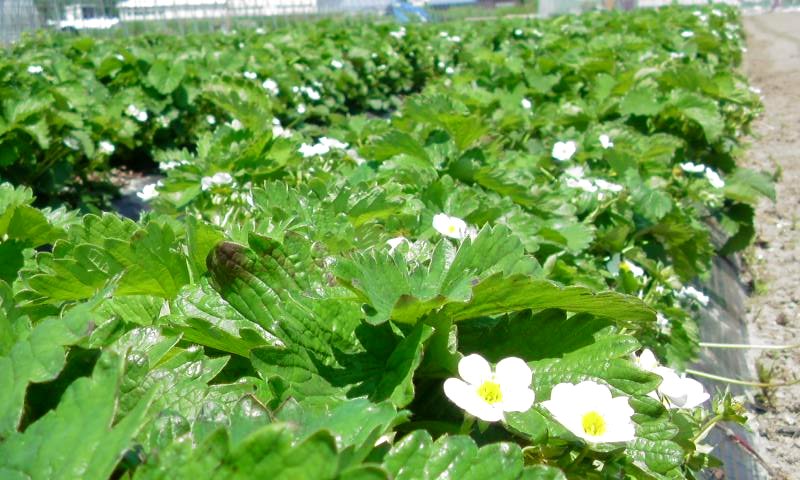 ちょっとアングルがよろしくないけども、こりは苺畑の一部でつ。