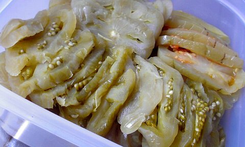 何を仕込んでたかとゆーと、ちょっと珍しい?トマトのお漬け物よ。