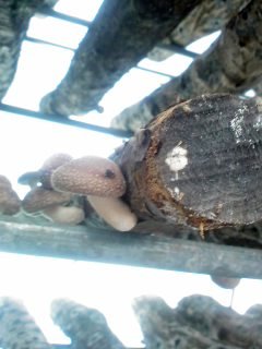 そしてでっかいハウスに沢山木を並べ、温度や湿度を保ちチノコが大きくなったら収穫。